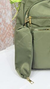 - Material and Texture: The backpack made of a lightweight, water-resistant fabric, suggesting a durable yet casual feel.